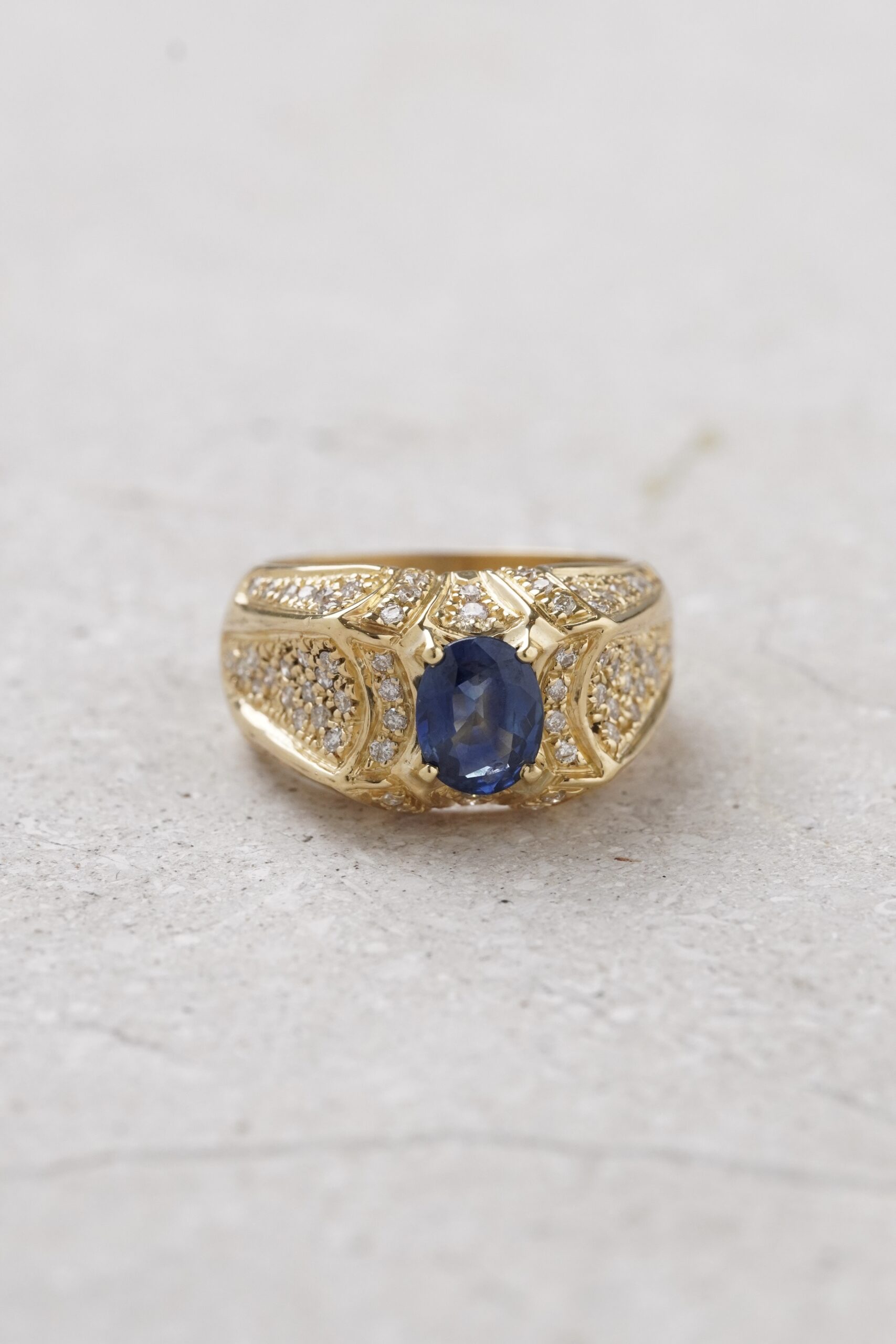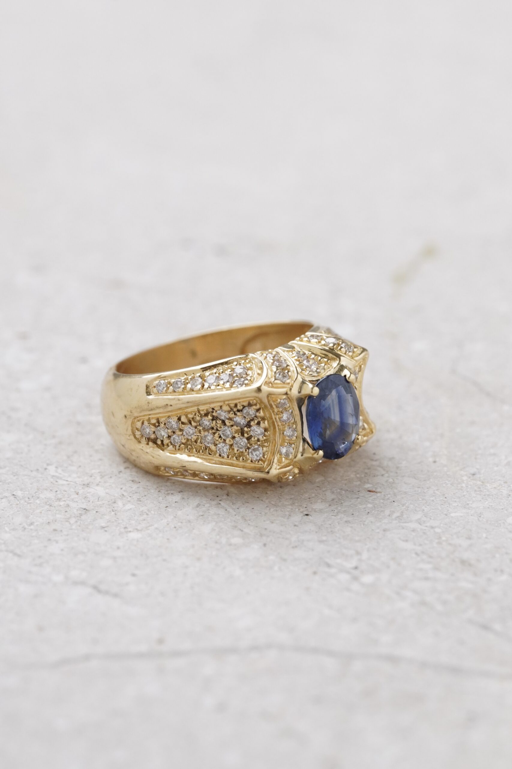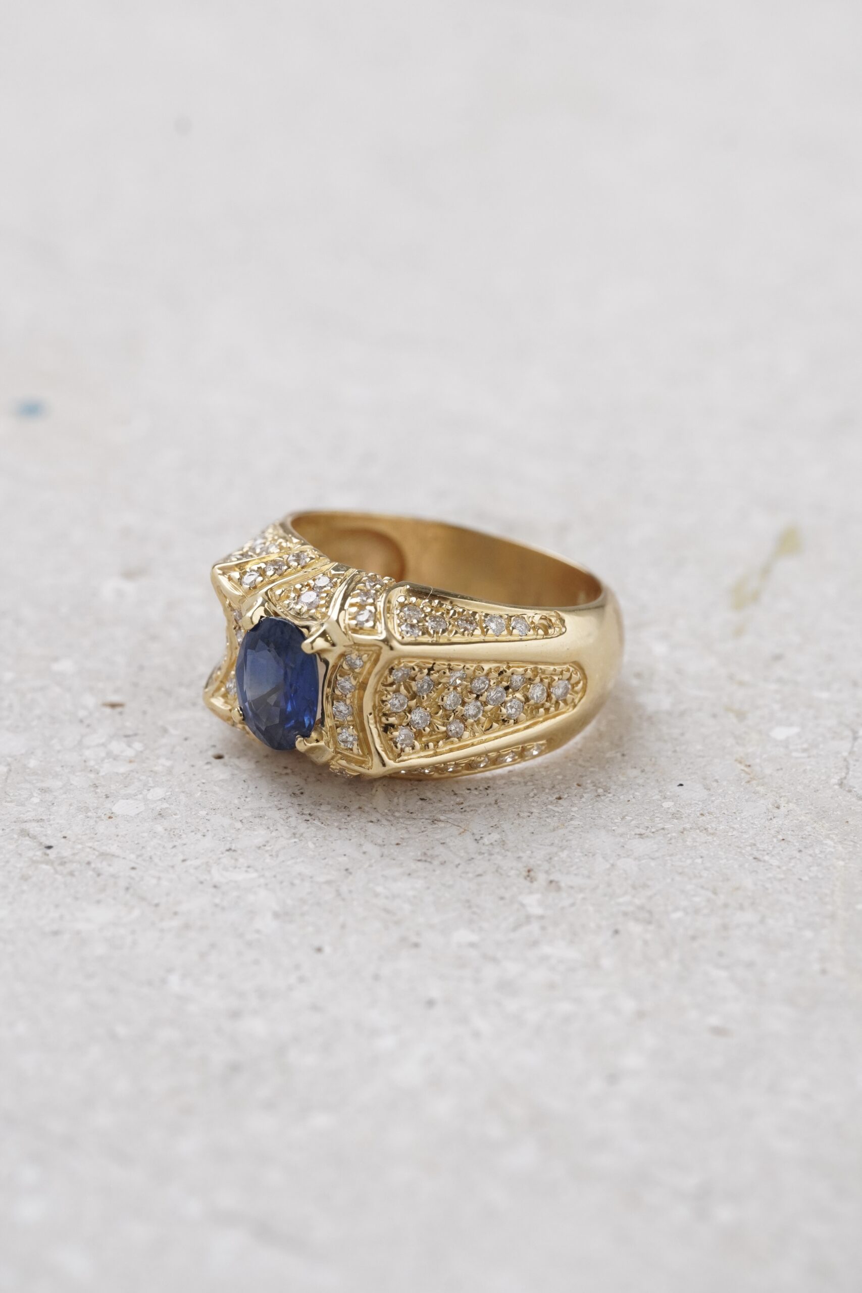 Anillo de zafiro con diamantes y oro amarillo
